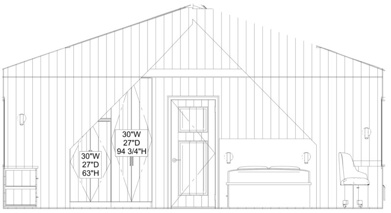 At the heart of the main level, the kitchen, dining room, and gathering room open to sweeping views of the lake. The architecture of the windows on this elevation was meticulously planned to maximize the panorama. The wood-trimmed frames capturing blue water, shifting light, and ever-changing skies. Even the loft and bunk room on the second floor enjoy a slice of this view through a beautifully detailed wall of windows.